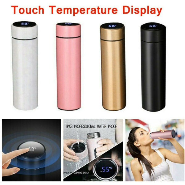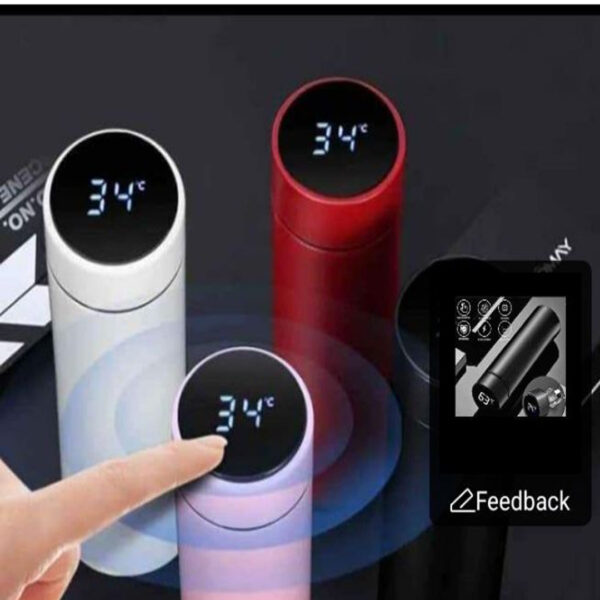 Smart Thermal Stainless Steel Bottle with LED Temperature Display High quality to keep the Heat / Cold Conservation at Higher Standards to achieve your Expectations. Capacity 500+ML Smart LED touch screen with intelligent temperature measurement, no need to be charged/recharged. keeping cold temperatures below 10 ° C for up to 12 hours. After 12 hours at 100 ° C temperature will be maintained at around 40 – 50 ° C. Perfect for any occasion and situation on the road, at home, in the office or outdoors. Waterproof Resistant SMART LED WATERPROOF DISPLAY – Intelligent temperature measurement touch screen and resistant to water, ready to be part of your daily and family life. Leak Proof Design The Bottle is sealed and spill-proof to ensure perfect, safe sealing and reliable, leak-free performance