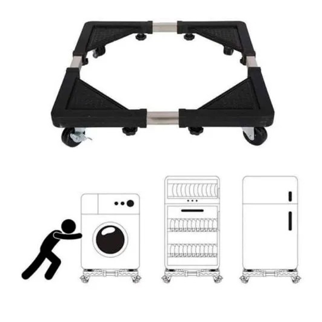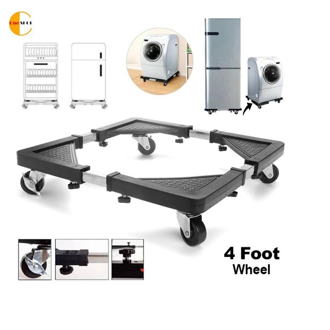 Product details of Washing Machine Stand Mount – Multi-function Roller Washing Machine Mobile Refrigerator Base Reinforced Retractable Movable Rack with Wheels Kitchen Fridge Base Bracket This item is mainly used at the bottom of the refrigerator, washing machine, and dry cleaning machine You can also use this as a trolley in moving some heavy household appliances Can be adjusted width and height at will, suitable for all types of refrigerators, air condition Nylon based with anti-skidding edges Stainless tube with stopping lock feature Wheel with lock system, fixing the stand at your desired position Size adjustable, fixed with a screw under the base Made of good quality materials, pressure and corrosion resistance, no rust, easy to move and clean The specially designed anti-skid noise reduction pad at the bottom effectively reduces the vibration and noise of the washing machine The valid length of the product is 56cmx56cm